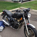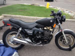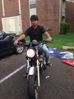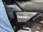 Kaustubh has done a very nice job with his Radian. It's flat black with white stripes, custom side panels, a cool round headlight, and it just looks so clean! Awesome! Thanks, KP!